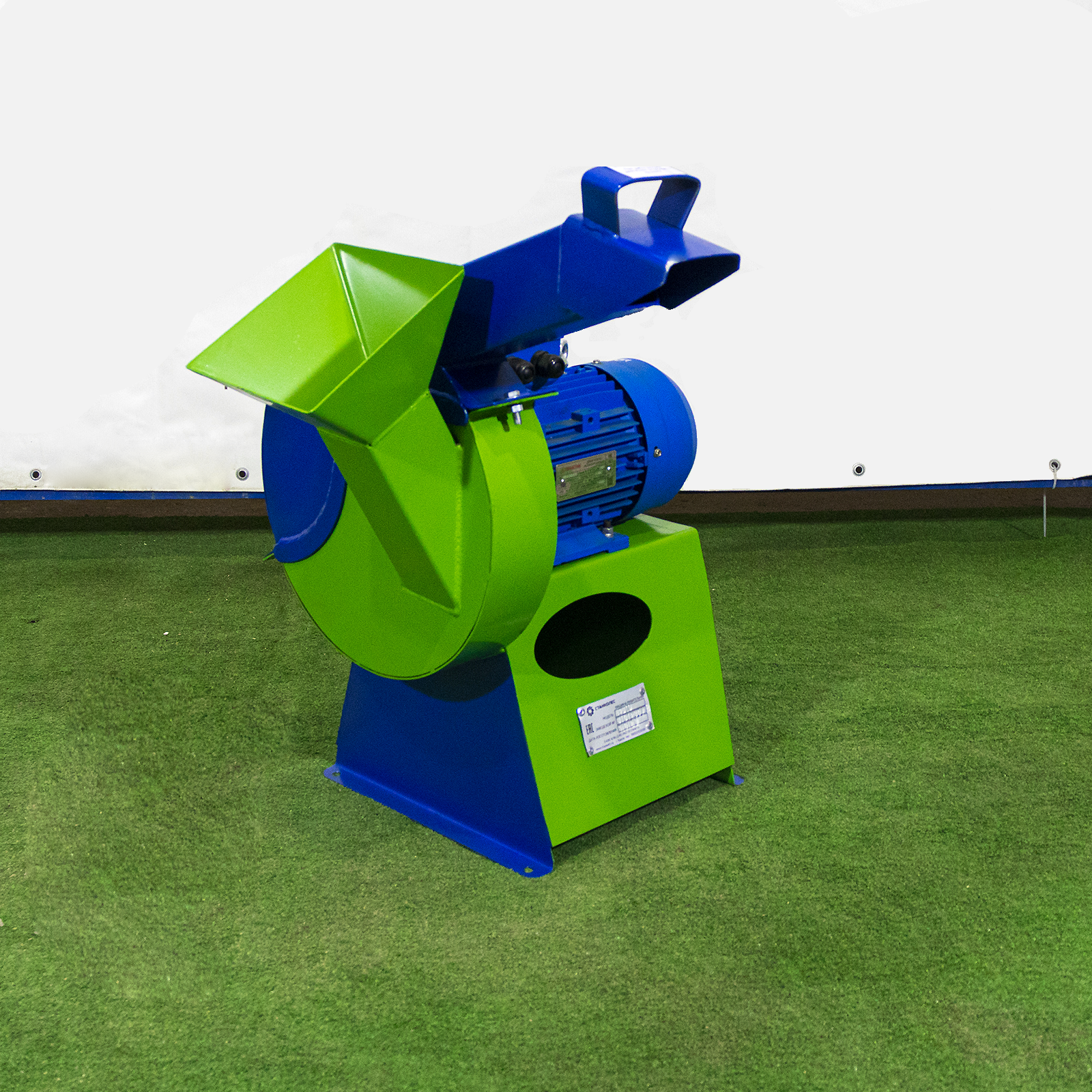 - отличная производительность. Производительность данной модели составляет до 300 кг/час. Станок оснащается электродвигателем мощностью 3 кВт, который работает от сети 380 В. Данный двигатель обладает оптимальным соотношением мощности и небольшим энергопотреблением. Многолетняя практика доказала, что данный двигатель надежен при длительной нагрузке и способен легко справиться с ветками различного диаметра.