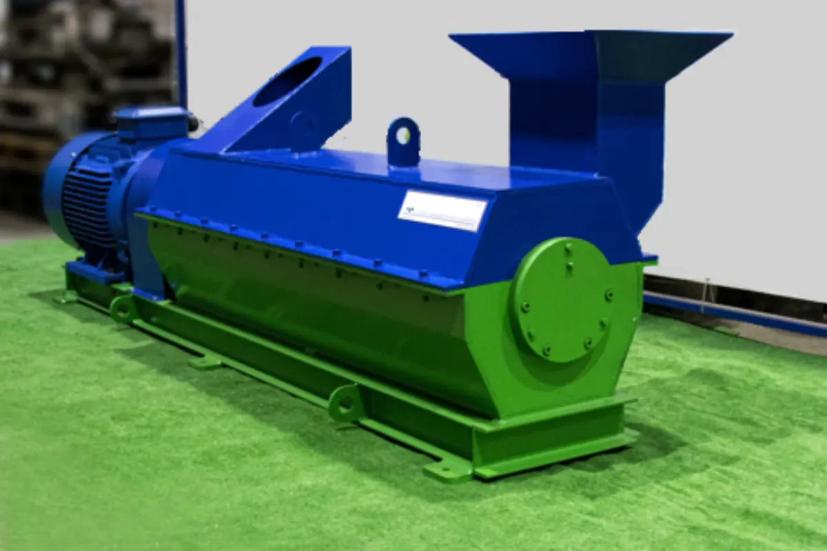 Молотковая дробилка мод. ИМ-37 – является станком второго ряда и предназначен для доизмельчения сухого и влажного сыпучего продукта. Перерабатывает древесные отходы в виде щепы, стружки, опила и т.п. в более мелкую фракцию, пригодную для дальнейшей переработки в топливные древесные гранулы (пеллеты). Оборудование оснащено специальными лопастями для создания воздушного потока и большим количеством дробильных молотков, что обеспечивает высокую производительность. Измельчитель не имеет сито, поэтому исключается возможность забивания камеры дробления сырым материалом.