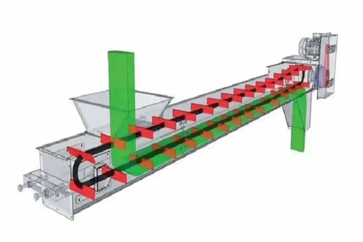 Транспортер цепной скребковый мод. ТЦС-350 – предназначен для перемещения сухих и влажных сыпучих материалов в горизонтальном направлении и направлении под углом до 45 градусов. Хорошо перемещает зерно, гранулы, щепу, опил, стружку и т.п. Оборудование изготавливается в закрытом и полузакрытом металлическом коробе, что обеспечивает максимальную пылезащиту и защиту от рассыпания продукта в процессе транспортировки. Специальное полимерное жаропрочное покрытие и продолговатая форма скребков сводит к минимуму риск повреждения перемещаемого материала. В качестве рабочего элемента используется стальная тяговая пластинчатая цепь, которая устойчива к механическим воздействиям, что обеспечивает максимальную надежность и ремонтопригодность оборудования. Транспортер состоит из приводной и натяжной секции, цепи со скребками, приводных звездочек, мотор-рекдутора, металлического прямоугольного короба, загрузочной и выгрузной горловины. Может использоваться как отдельно, так и в составе производственных цепочек линии оборудования, в закрытых и открытых помещениях, а также под навесом.