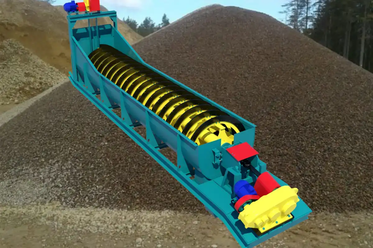 Принцип действия данного типа оборудования основан различной скорости оседания твердых частиц в водной среде.Конструкция классификатора состоит из полукруглого корпуса, наклоненного под углом 12-18 градусов. Внутри корпуса находятся вращающиеся валы, на которые установлены спирали. Работа классификатора может осуществляться как в открытом цикле, так и в замкнутом. Чаще всего классификатор песка используют в сочетании с шаровой мельницей.